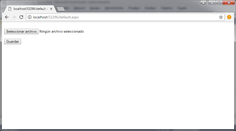 Vamos a necesitar tres controles en la página principal (default.aspx). El primero es el control FileUpload