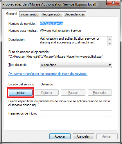 Me ha pasado varias veces por eso escribo la entrada con la solución al problema, no es más que el servicio «VMware Authorization Service» que por algún motivo no a podido iniciarse. Para comprobarlo y/o solucionarlo dirigíos a los servicios de Windows y buscad el mencionado servicio.