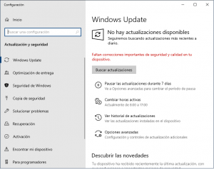 Uno de los primeros pasos después de instalar un sistema operativo es actualizarlo con todas las actualizaciones hasta la fecha. Para comprobar si existe alguna actualización del sistema operativo seguir los siguientes pasos.